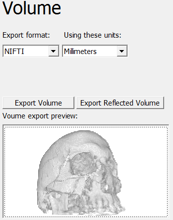 Converting DICOM to NIFTI with Checkpoint is a short and simple process. Load a DICOM volume, then go to the “Export” tab. Under the volume section, select the NIFTI file format from the list provided in “Export format”. The “Using these units” attaches new units (i.e. mm, m, etc.) to the exported volume. Click the “Export Volume” button, then select a directory and a name for the NIFTI file and click ‘Save’ to export.