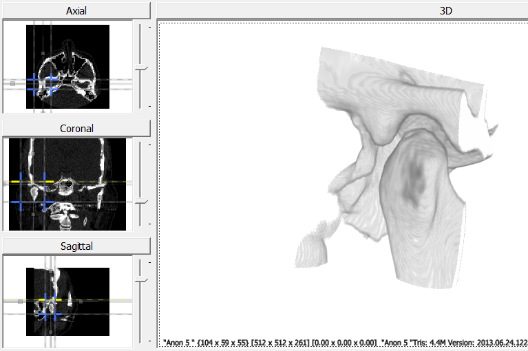 - Load a CT scan of a head. For this example, the scan includes both the fossa and condyle.