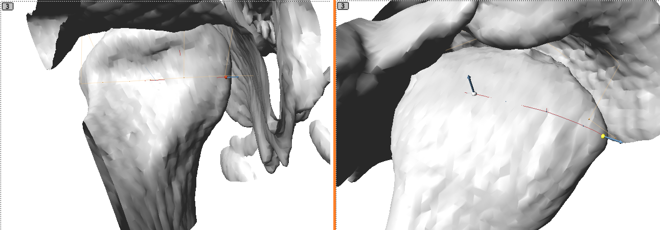button, then hold ‘shift’ and left click on the condyle to add the joint primitive. - Move the red and yellow control points to the medial and lateral sides of the condyle.