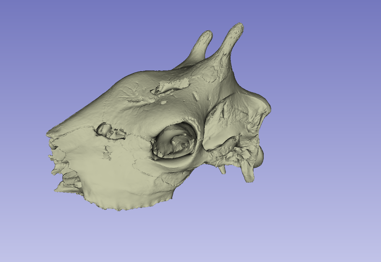 The landmark protocol is not yet standardized. This is something that they will work on throughout the project depending on the preservation of the studied skulls. Their main thoughts include points at certain key areas of the skull (widest zygomatic arch, base of the foramen magnum etc.), contours for the upper teeth, contours or patches for the ossicones etc. The main problem is that giraffe, especially the male ones, are characterized by secondary ossification of the dorsal part of the cranium. This means that it is nearly impossible to collect type 1 landmarks.