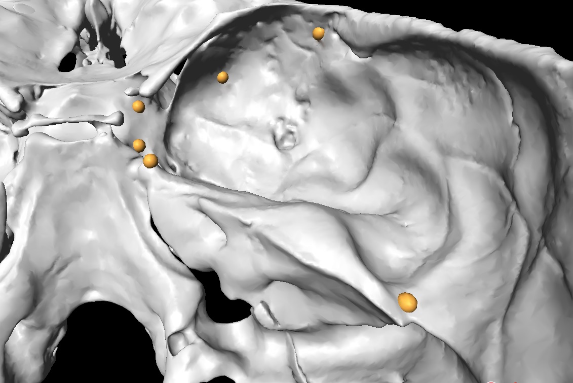 "My landmark placement protocol was based on the most biologically sound positions to capture the area where the temporal lobe is located most closely with the cranial base. Areas of interest included the length, width at the top, middle and further back and the location of the temporal pole plus the height at the front of the temporal lobe. These landmarks had to be repeatable on all human and non-human extant primates but also the fossil specimens which shared evolutionary branches dating back nearly 40 million years.