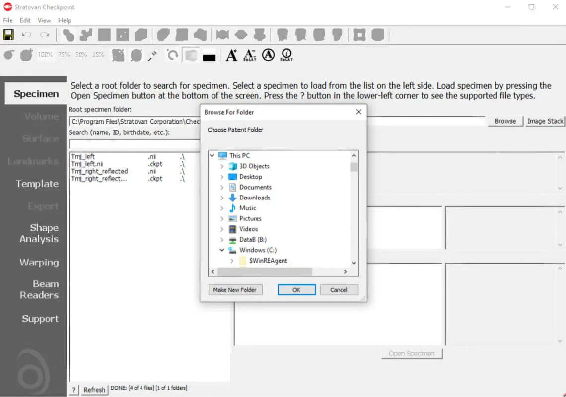 Here, you can find and import your specimen into Checkpoint by clicking Browse.