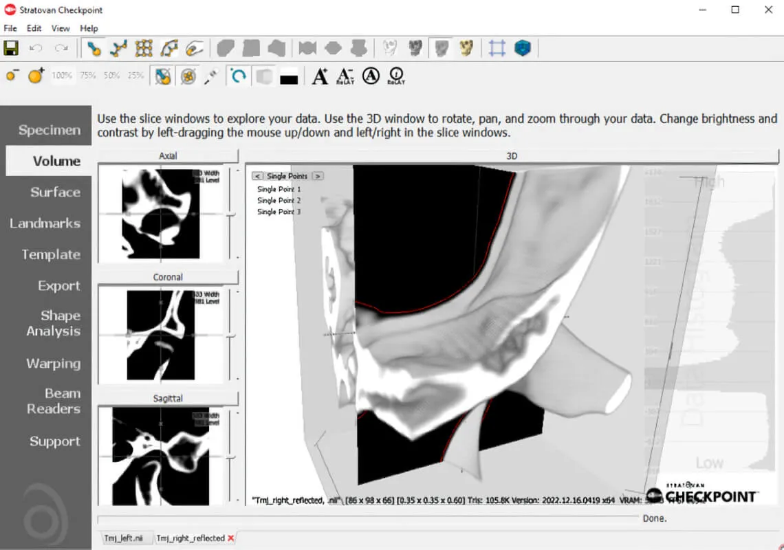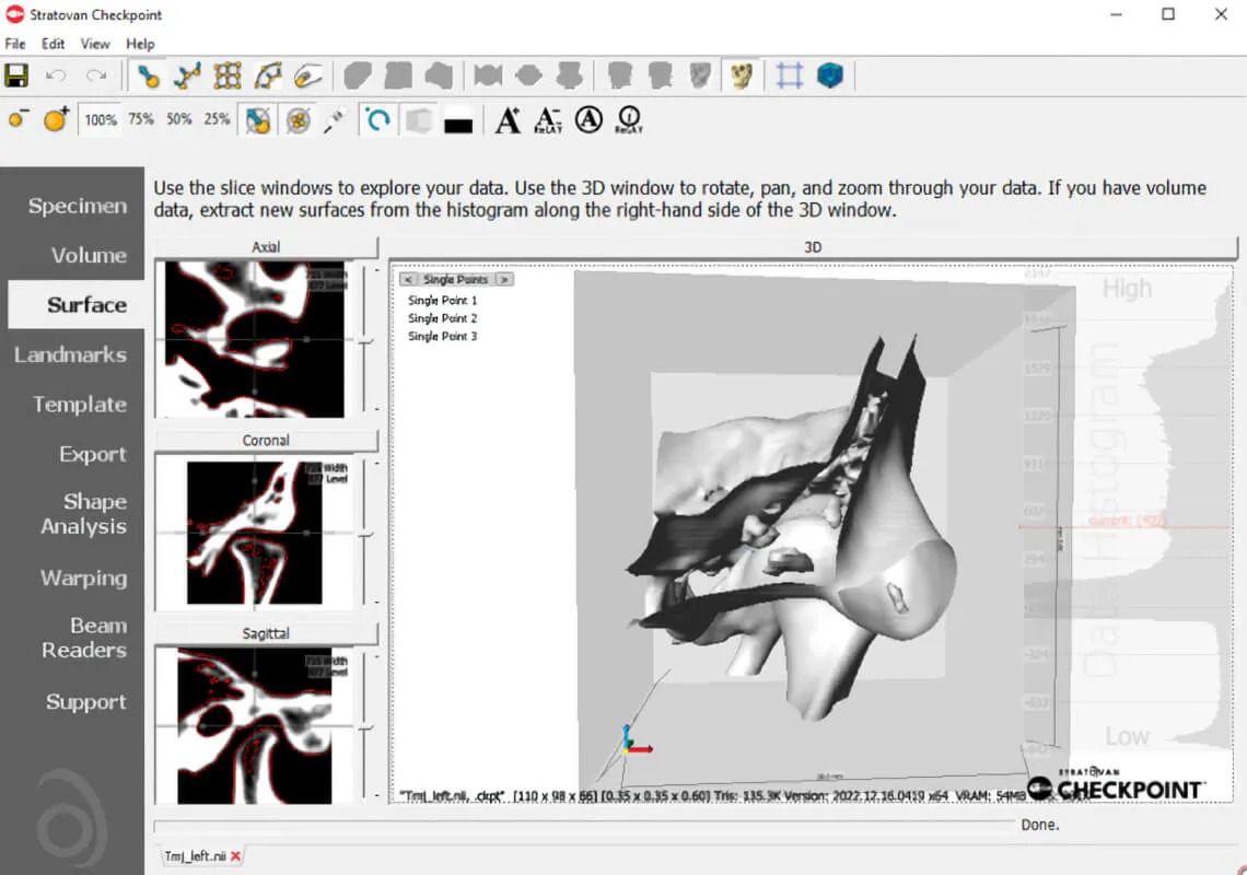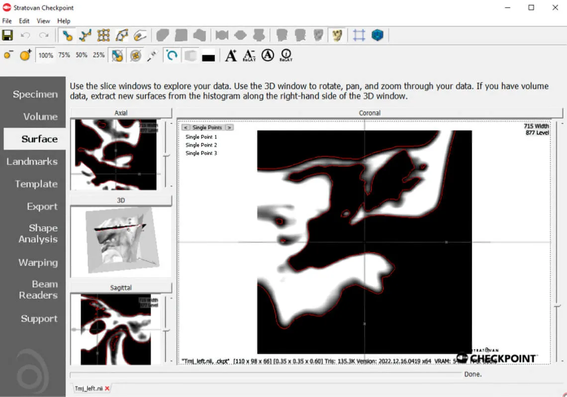 On the right is your 3D view of the model and on the left, there are the three CT slices axes.